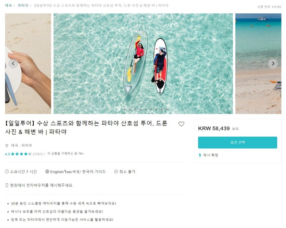 태국 파타야 산호섬 투어도 다녀왔는데
