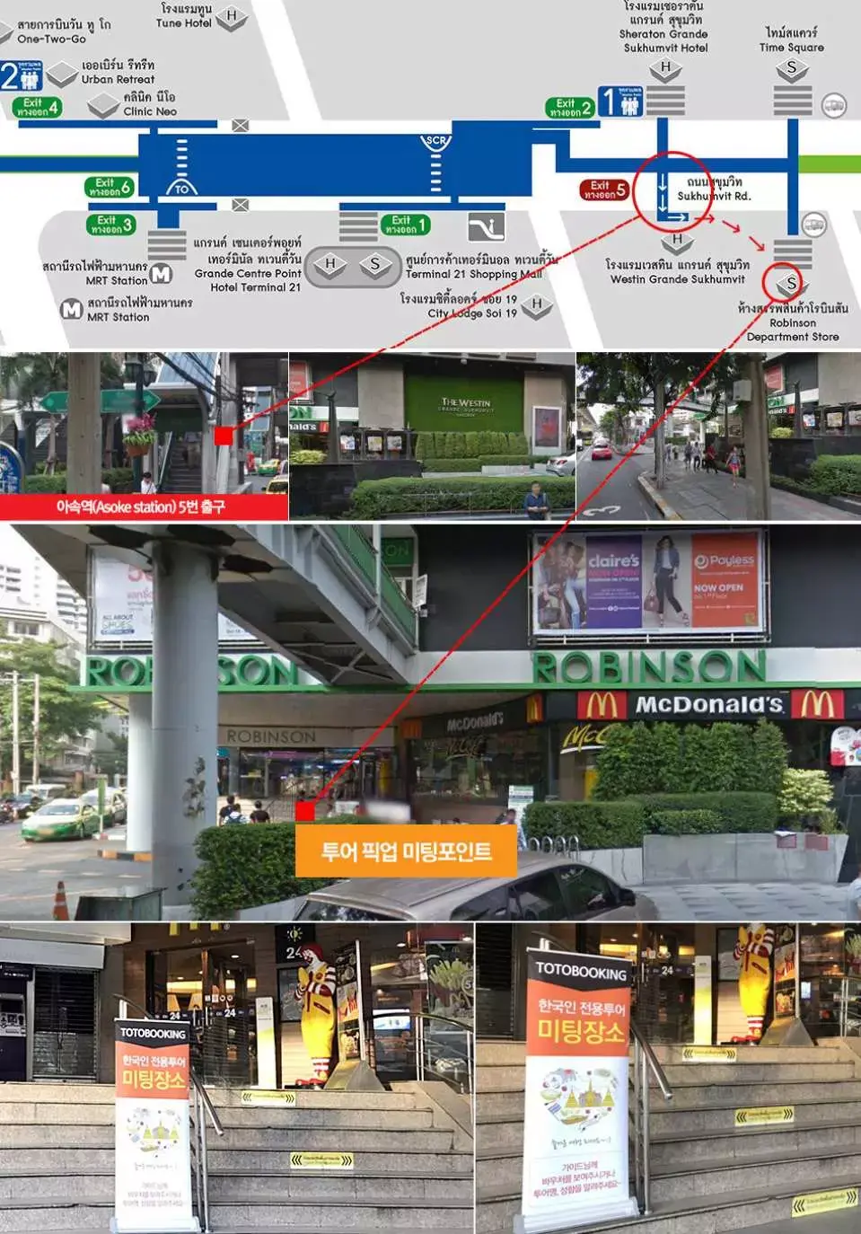 - 14:30 집결 , BTS 아속역 5번 출구, MRT 수쿰빗역 3번 출구, 로빈슨 백화점 1층 맥도날드 앞 집결 (단독 투어시 투숙하시는 호텔 픽업)